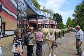 De Regenboogspiraal in Houthem (Ronald McDonald Kindervallei), een vakantieoord voor kinderen met een lichamelijke of meervoudige beperking samen met hun ouders, broertjes en zusjes. Het gebouw is een ontwerp van kunstenaar en architect Hundertwasser. We bezoeken het complex met lokale gidsen. Dat zijn, net zoals alle werknemers, vrijwillgers uit de streek met een hart voor kinderen en voor het Ronald MacDonaldproject. Vooraleer het gebwou te bezoeken, worden we vergast met koffie en Limburgse vlaai.